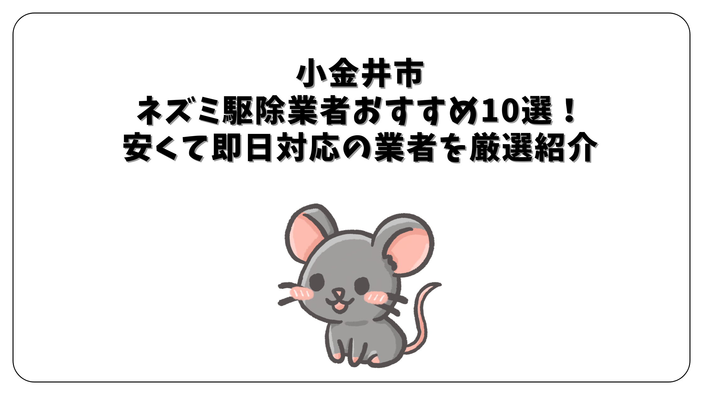 この記事では、小金井市でおすすめのネズミ駆除業者を10社厳選してご紹介しました。