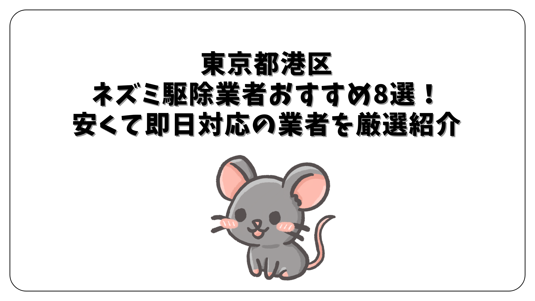 この記事では、東京都港区でおすすめのネズミ駆除業者を8社厳選してご紹介しました。