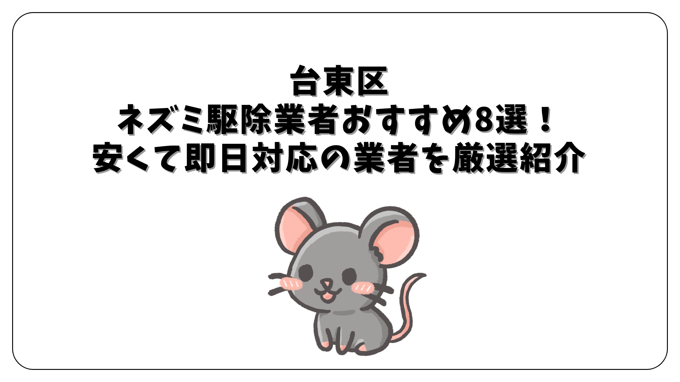 この記事では、台東区でおすすめのネズミ駆除業者を8社厳選してご紹介しました。
